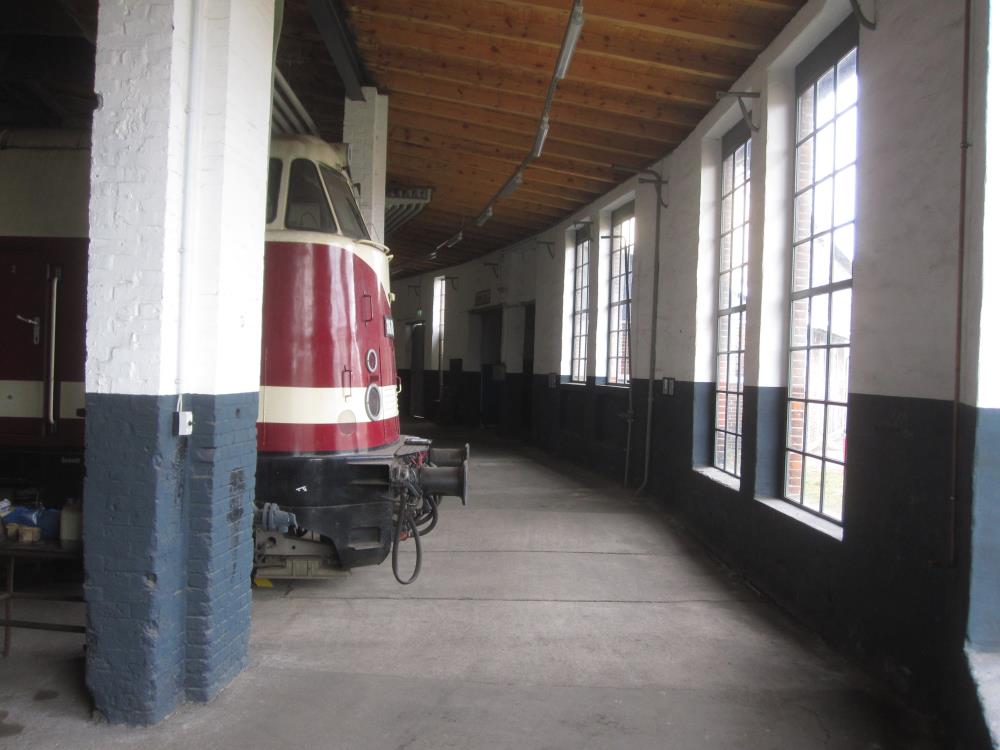 Der Rundschuppen bietet geschützten Abstellplatz für unsere Fahrzeuge auf heute sechzehn Gleisen. Die überdachte Fläche beträgt gut 2.000 Quadratmeter. Er wurde in den 1920er Jahren gebaut und war bis 1996 in Betrieb. Danach wurde die Anlage stillgelegt und verlassen. Die meisten Einbauten wurden danach entfernt oder gestohlen. Es gab zuletzt weder Lampen noch Leitungen noch Fenster. Alle Fensteröffnungen wurden aus Gründen der Verkehrssicherung durch die Deutsche Bahn AG mit Lochplatten verschlossen. Nach und nach fiel das Dach ein. In einer aufwändigen Maßnahme wurde das Gebäude ab 2011 saniert und 2012 als Museumsstandort in Betrieb genommen.