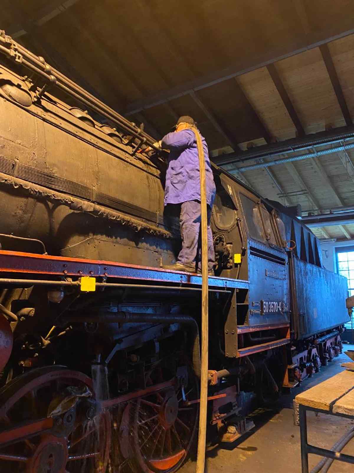 Am letzten Samstag konnten wir bei unserer Dampflok 50 3570 mit der Winterwartung beginnen. Dazu wurde zunächst das Wasser aus dem Kessel und dem Tender abgelassen, um Frostschäden zu vermeiden und den Kessel auswaschen zu können.