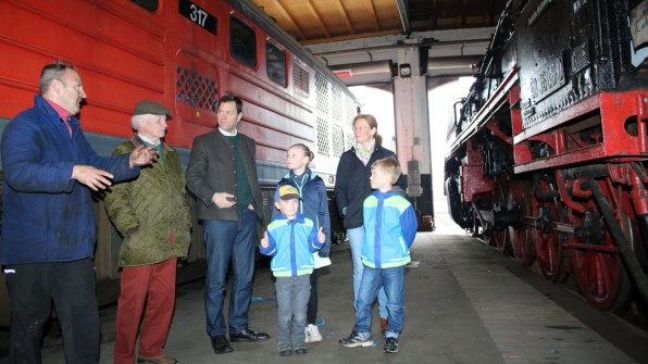 Für die Kinder von Marie-Clementine Dyckerhoff und ihrem Mann Wilhelm war es der erste Besuch im Lokschuppen. "Wir leben eigentlich im Sauerland und sind über Ostern zu Besuch bei meinen Eltern Clementine und Botho von Saldern", erzählte Marie-Clementine Dyckerhoff. Dirk Endisch gewährte den Gästen dann noch einen Blick in eine 136 Tonnen schwere Dampflok.